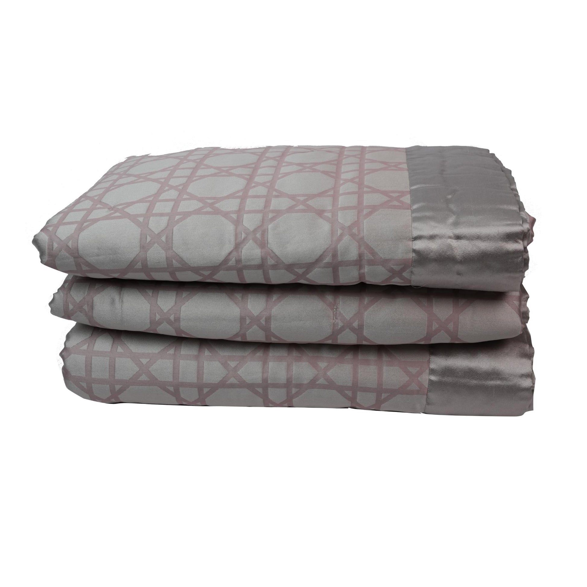 COTTON AND SILK BEDSPREAD, VIENNA DESIGN, SUPERKING SIZE SILVER AND DARK PURPLE COLOR, MADE IN ITALY