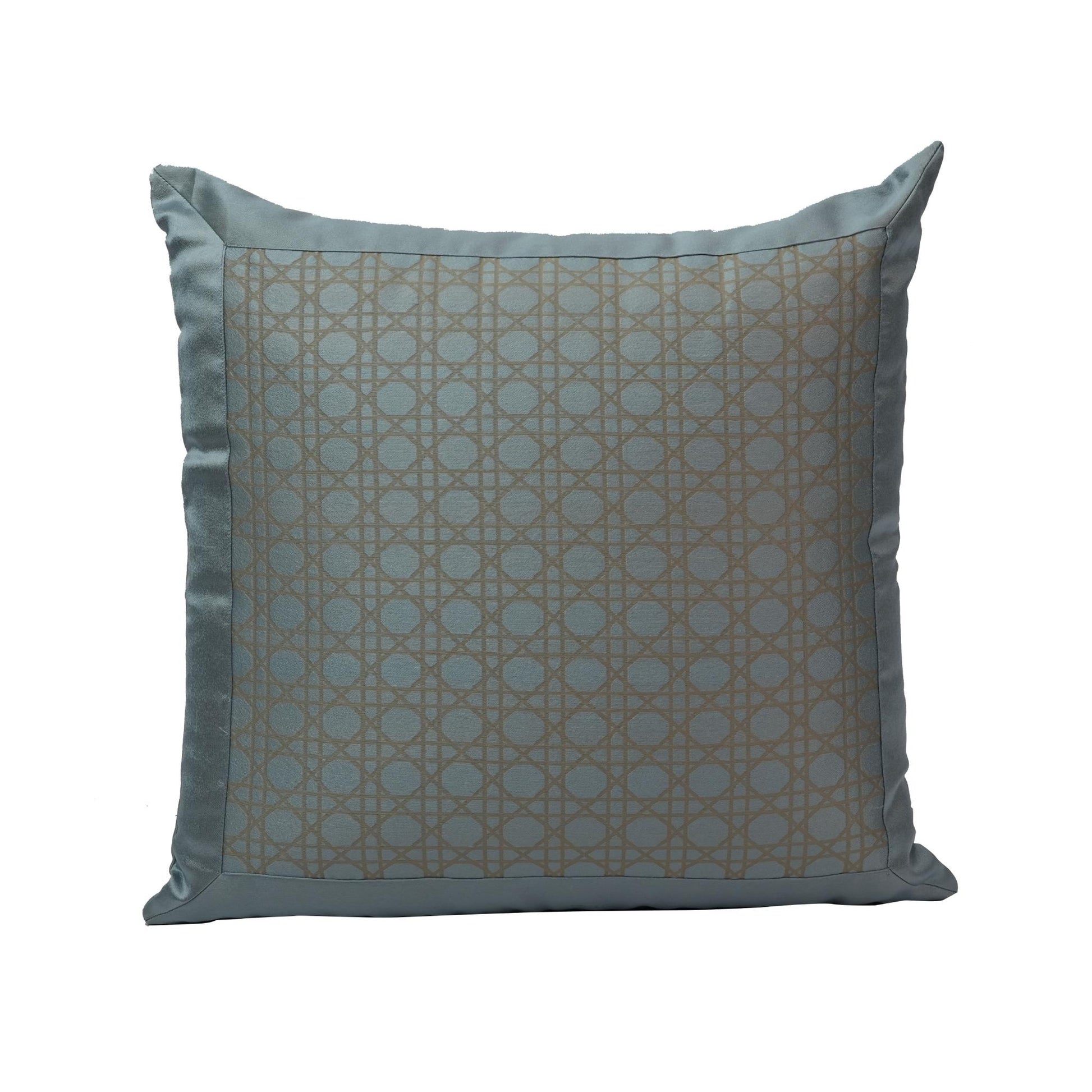 COTTON AND SILK CUSHION, LINZ DESIGN, DARK BEIGE AND LIGHT BLUE COLOR, MADE IN ITALY