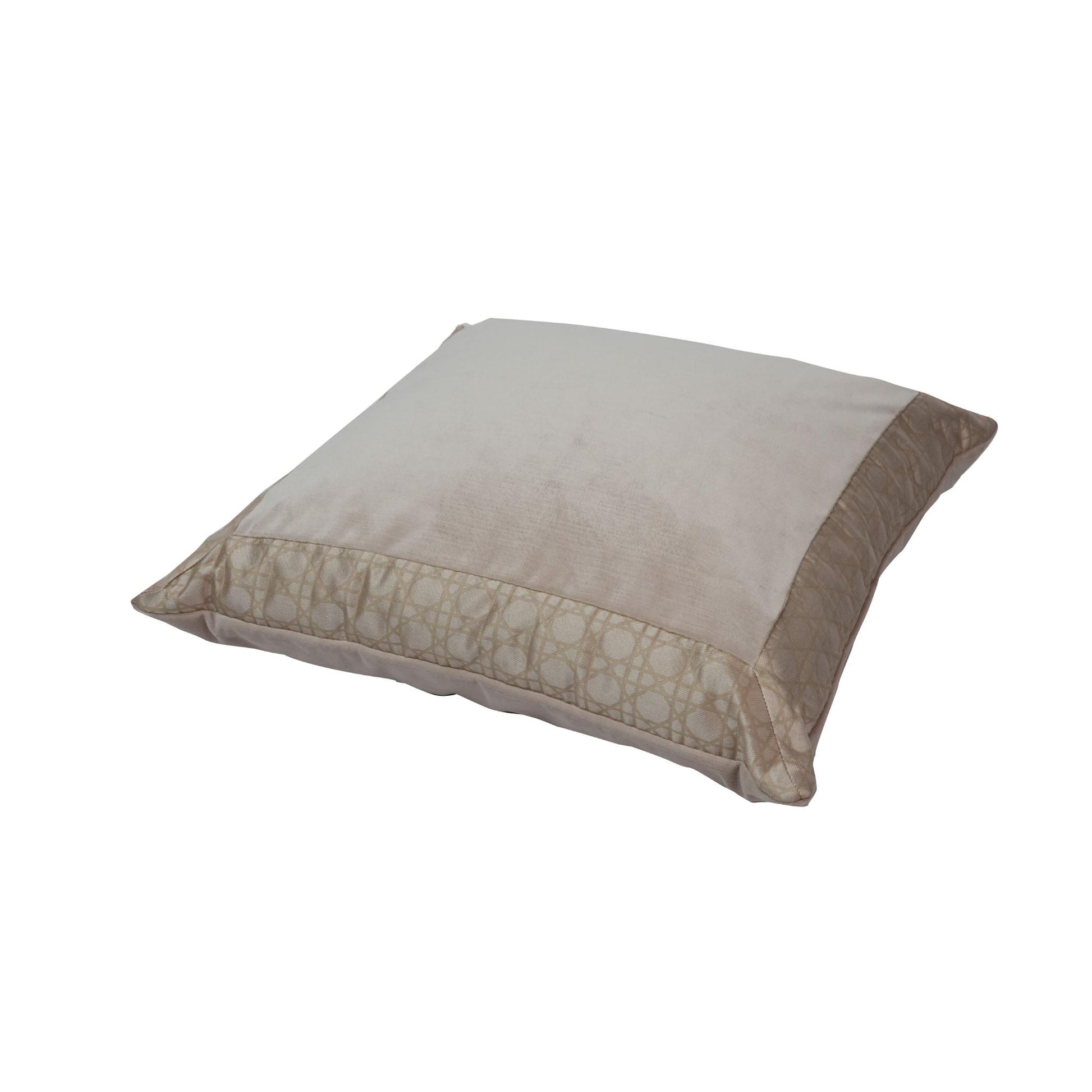 COTTON, SILK AND VELOUR CUSHION, BEIGE AND GOLD COLOR, LINZ DESIGN , MADE IN ITALY