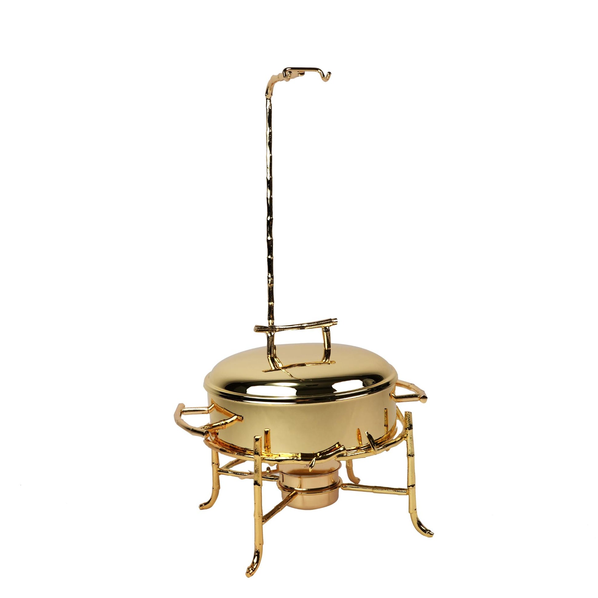 ROUND CHAFING DISH / BUFFET , PLAIN WITH BB BASE DESIGN DESIGN / GOLD PLATED
