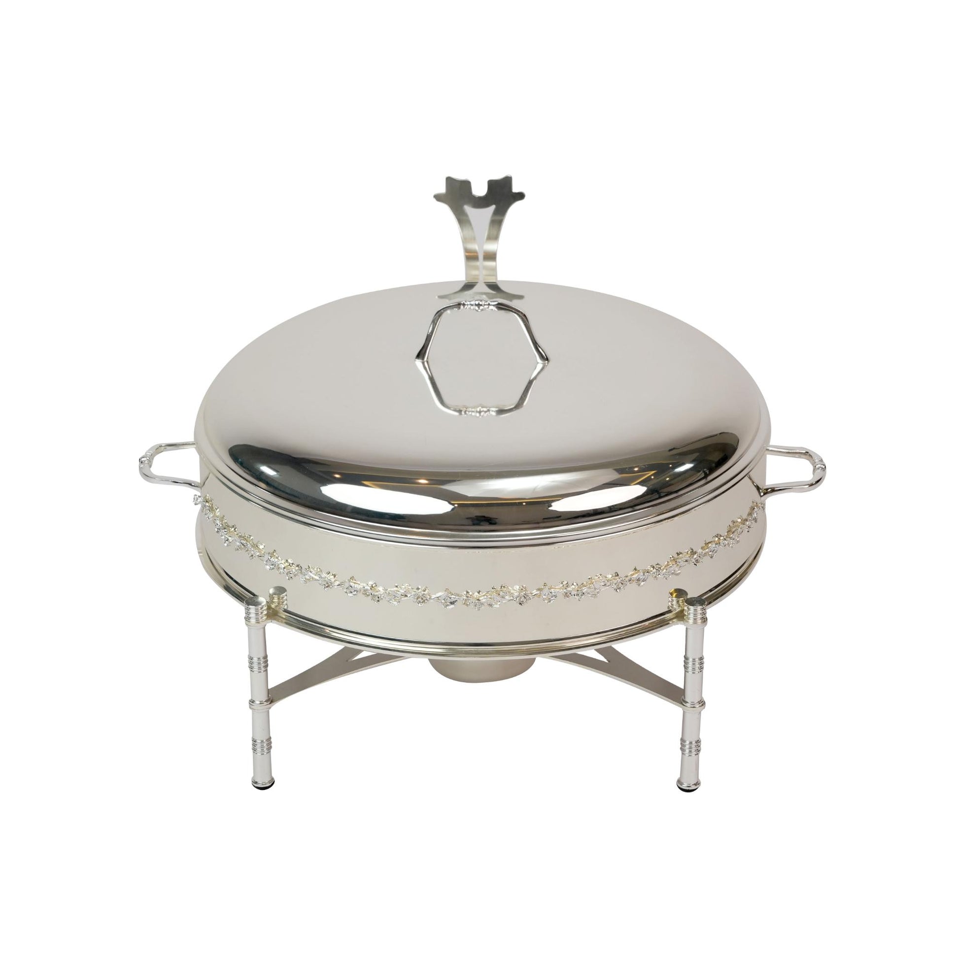 ROUND CHAFING DISH / BUFFET WITH ROSE DECOR DESIGN / SILVER PLATED