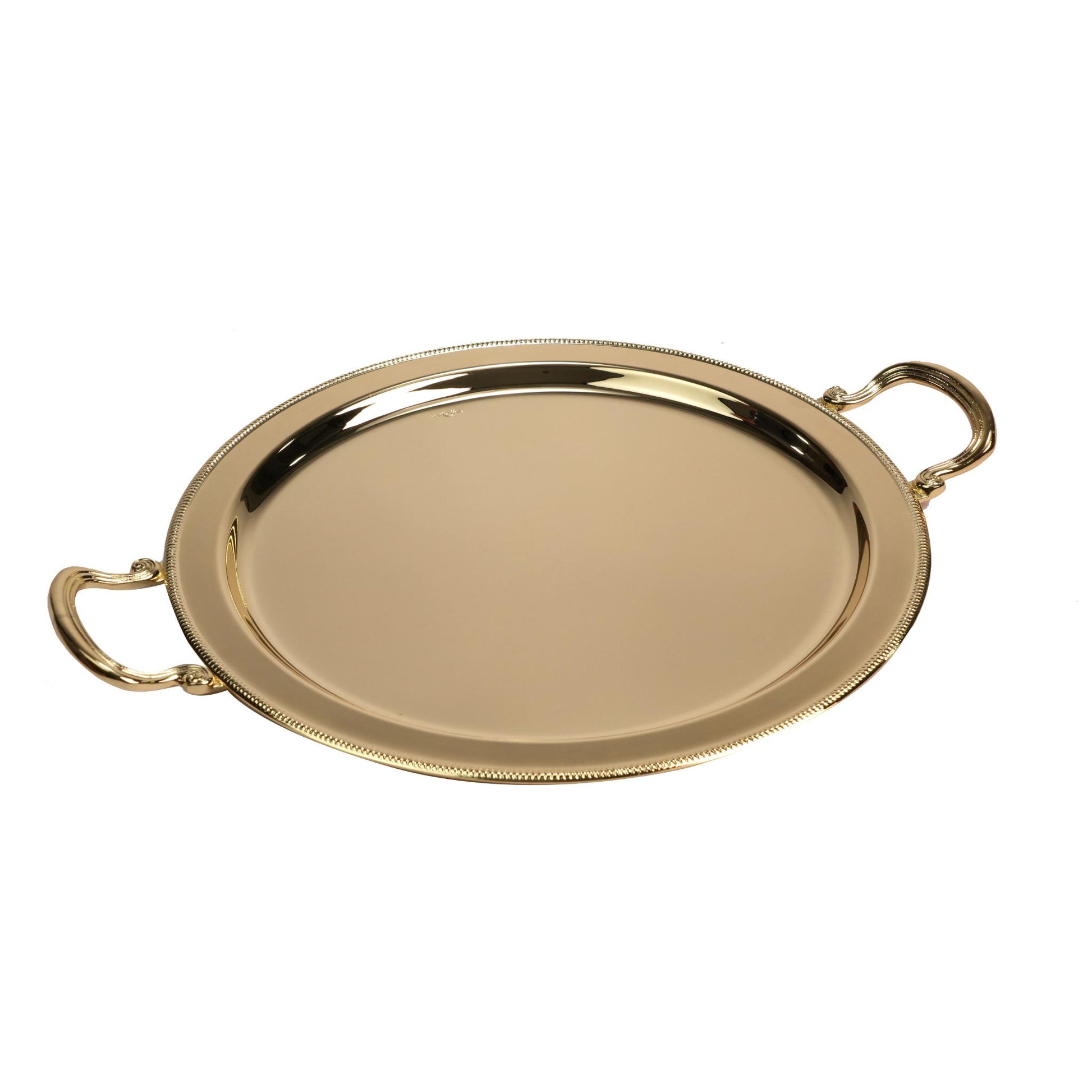 ROUND TRAY F38 GOLD / THIN SIMPLE DESIGN ON THE BORDER , MADE IN GREECE .
