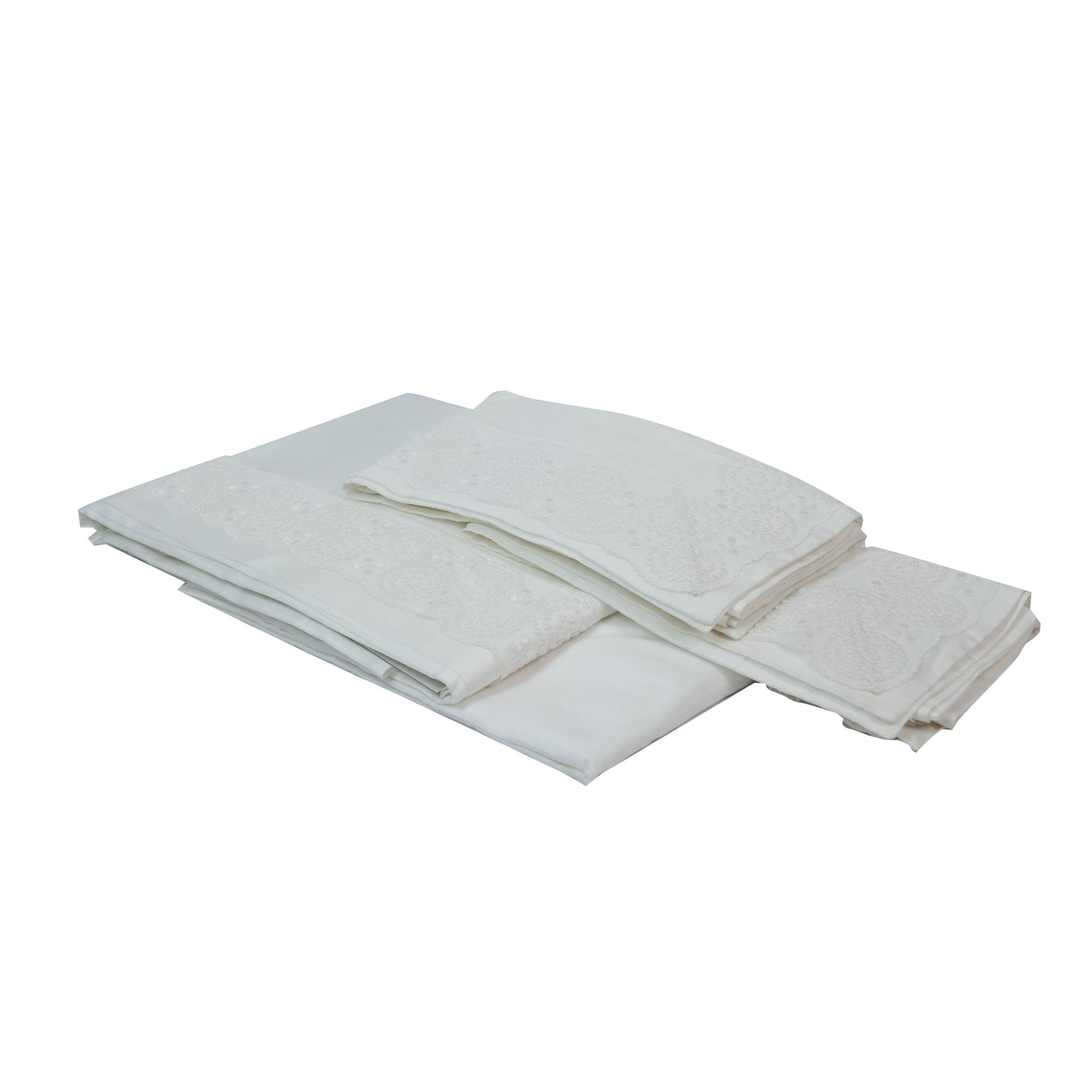 100 % COTTON TC 300 SHEET SET SUPER KING , 1 FLAT SHEET 1 FITTED SHEET AND 2 PILLOWCASES , MURANO DESIGN WHITE WITH LACE , MADE IN ITALY
