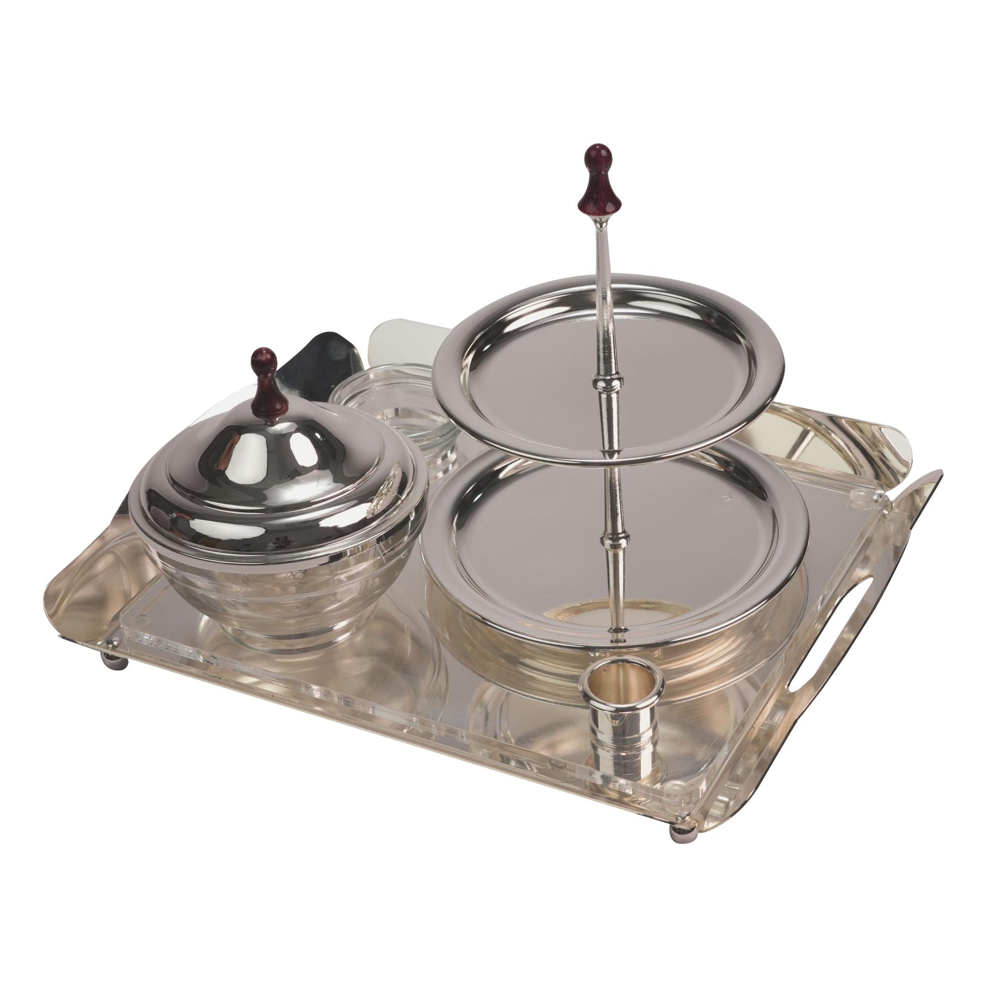 SREVING STAND TRAY WITH BOWL & 2 LAYER JASPER KNOBS DESIGN / SILVER PLATED