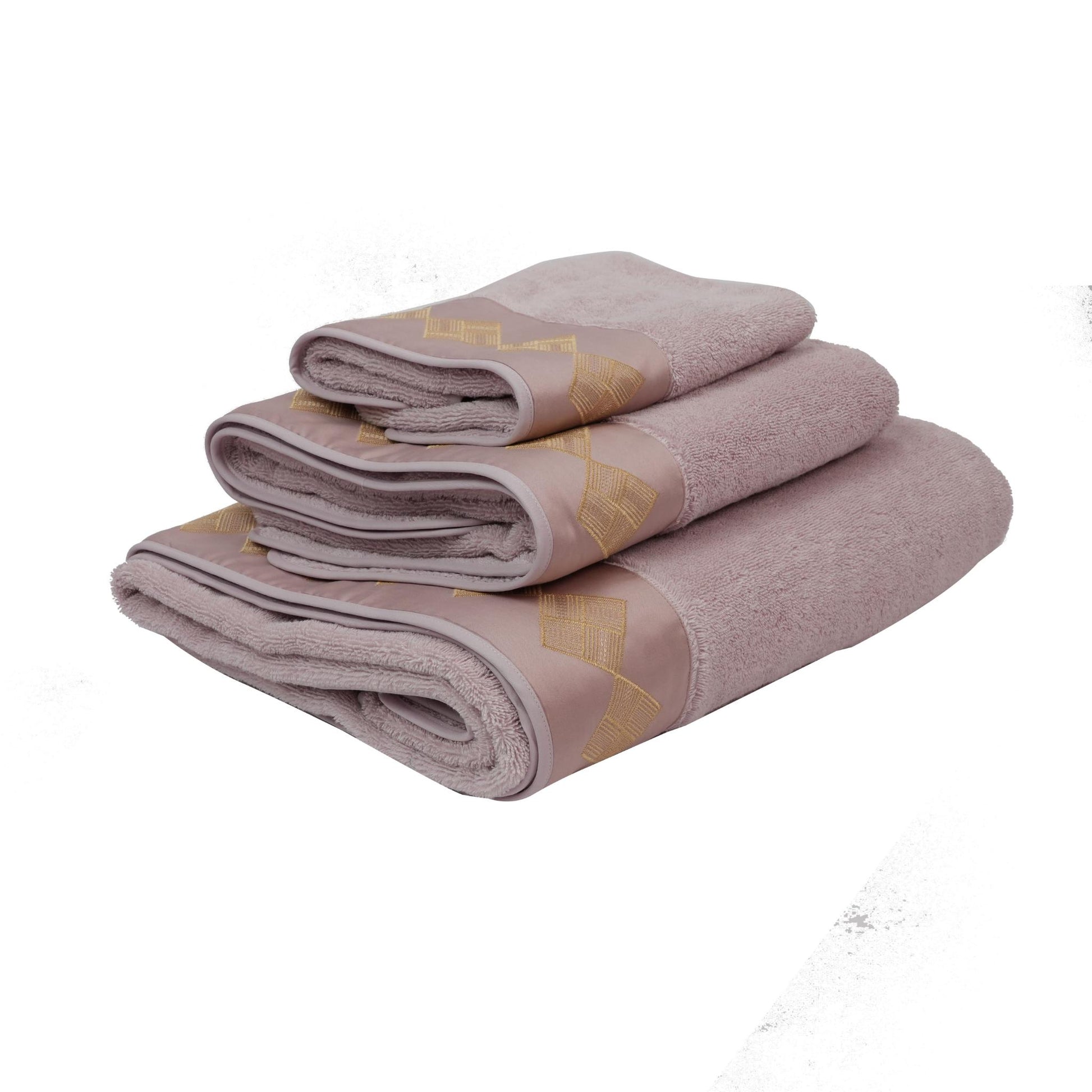 100% COTTON TOWEL SET OF 3 PCS, PINKISH PURPLE , DIAMANTE S DESIGN, MADE IN ITALY